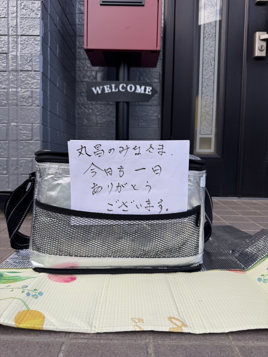 最終のご挨拶をしようとピンポンを鳴らしましたがご不在で、ご自宅を一周見て回ろうとしたとき、足元に保冷バックがあることに気付きました。