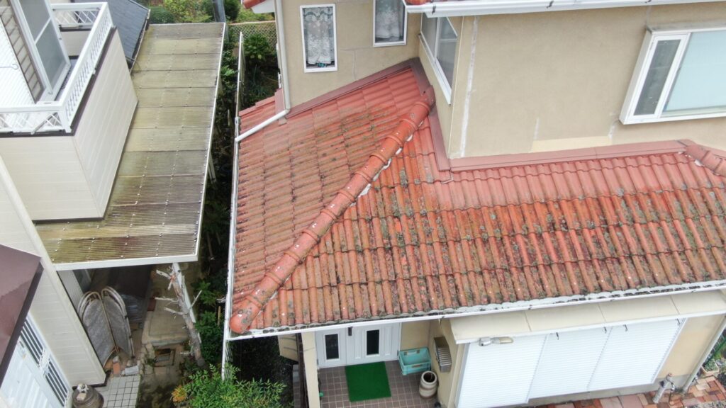 屋根表面に緑・黄・白の斑点が出てきたら、コケやカビが繁殖中…