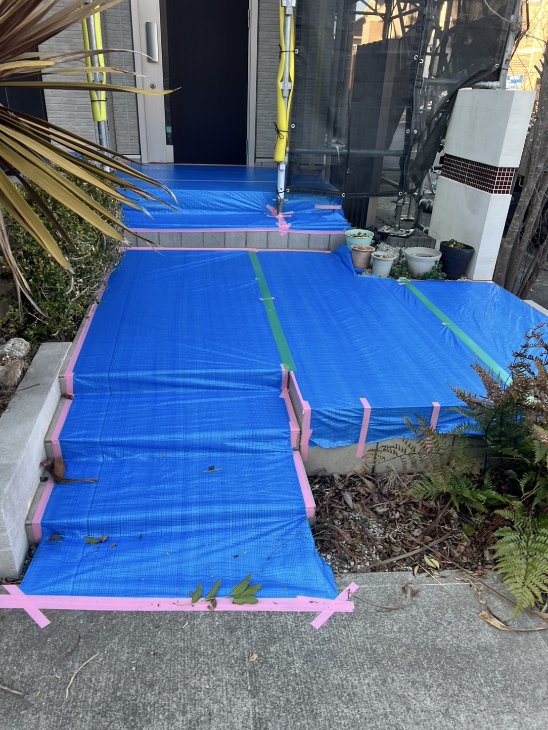 サッシやご自宅周りを汚さないよう、しっかりと養生していきます。