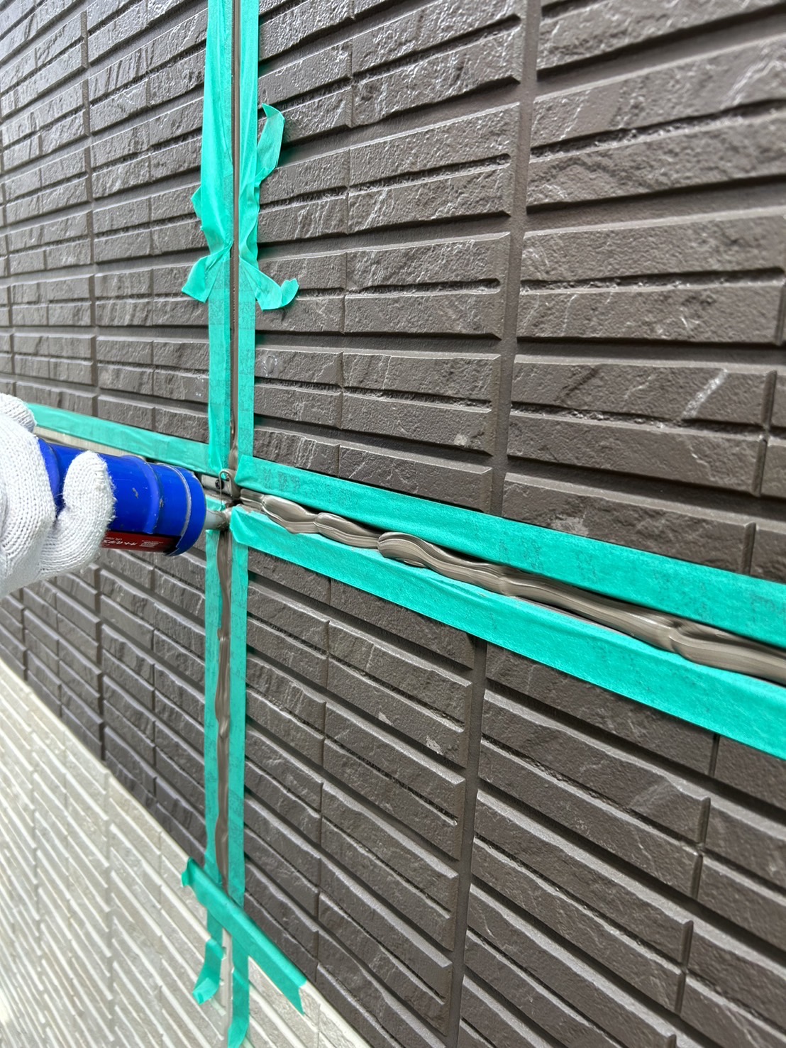 縦目地に関しては打ち替え、サッシ廻りや入隅は既存シーリングの上に打ち増しをします。