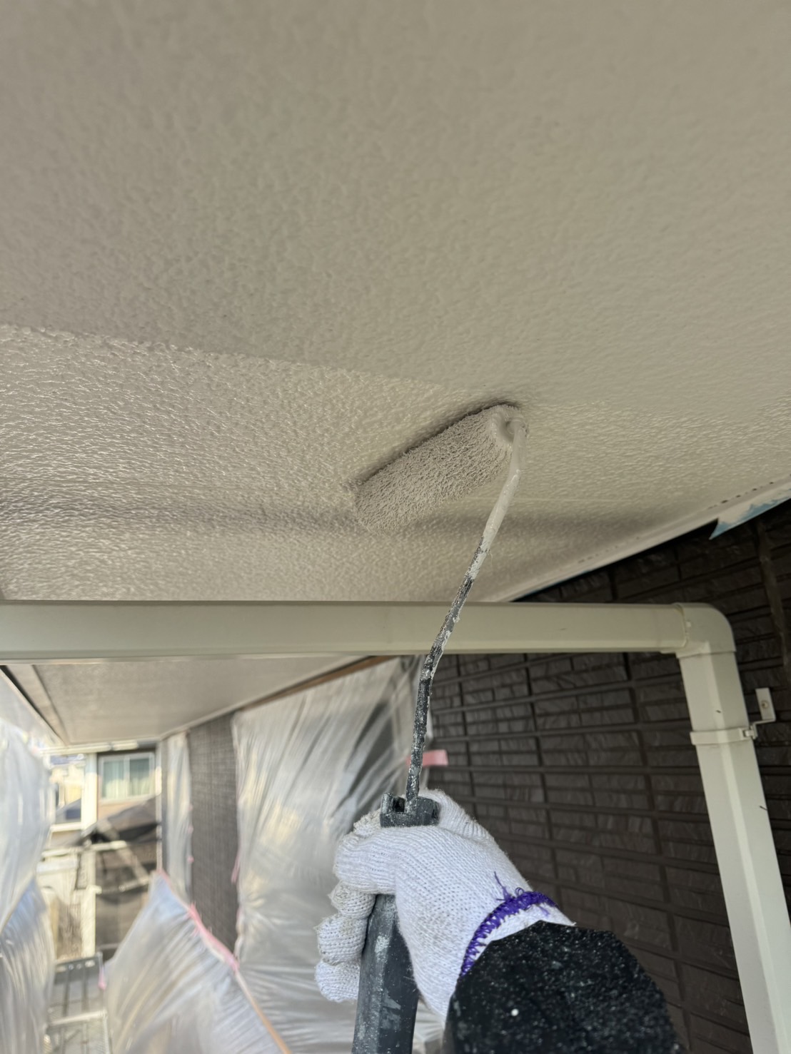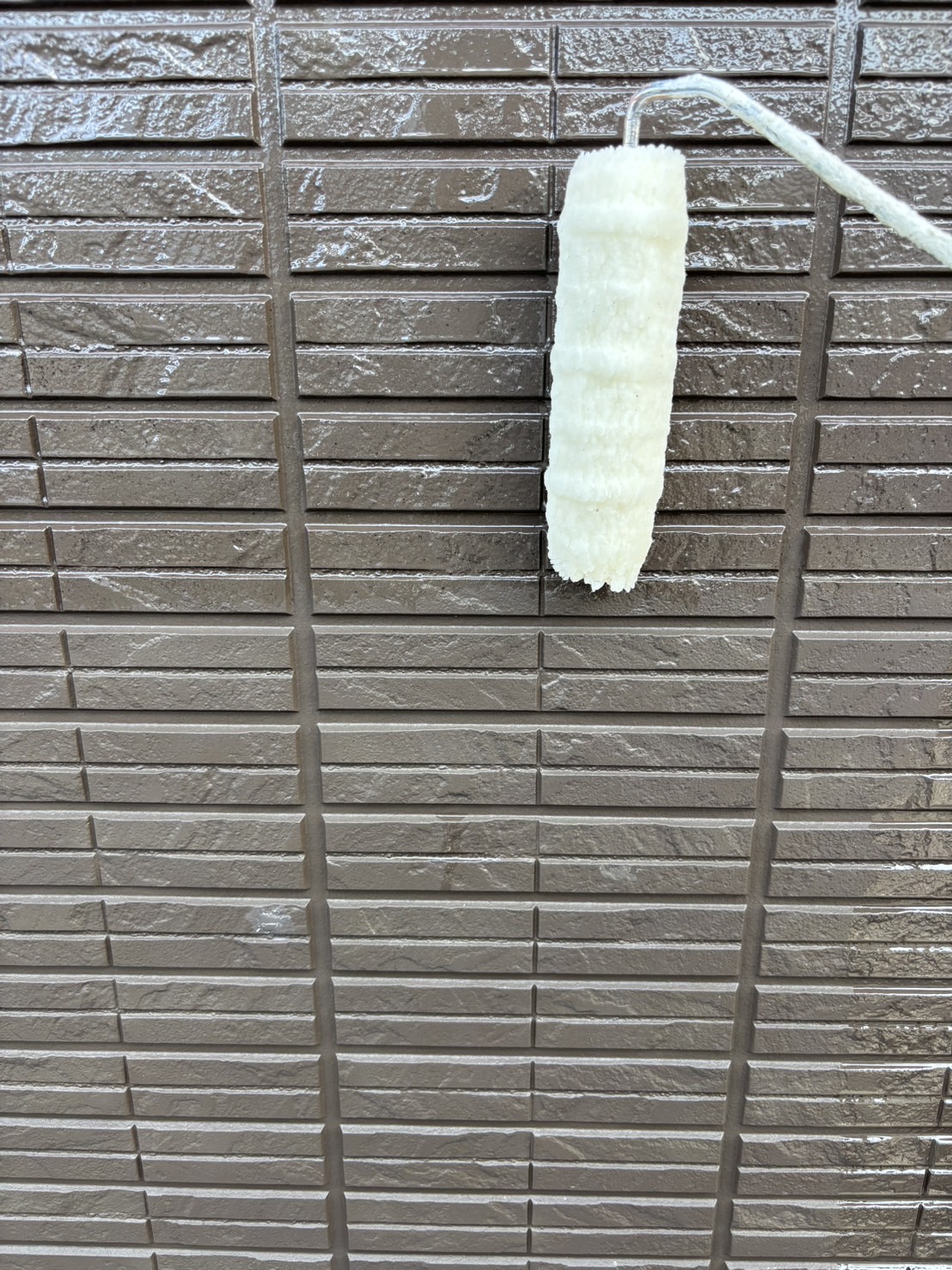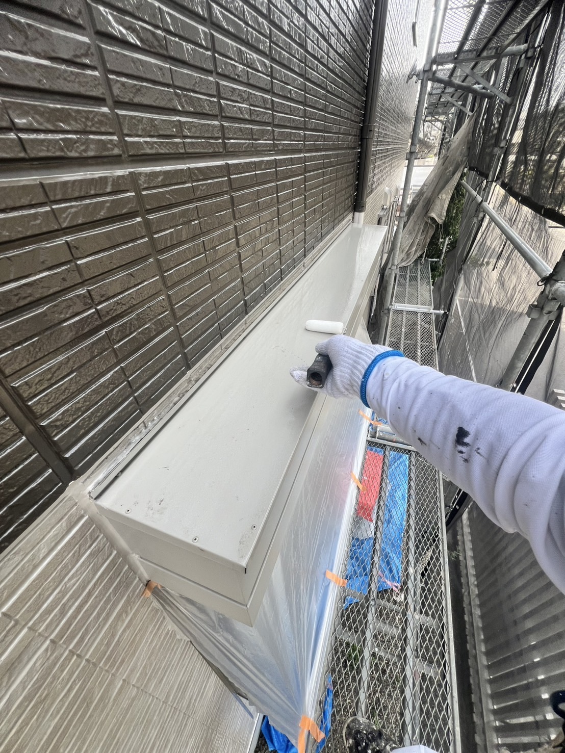 外壁塗装最後の仕上げです。艶消し塗料は特にムラが出やすいので均一に塗料を塗布していきます。