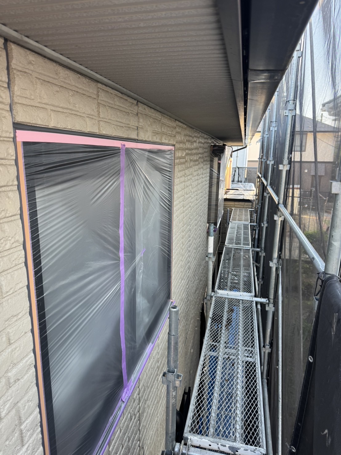 サッシやご自宅周りを汚さないよう、しっかりと養生していきます。