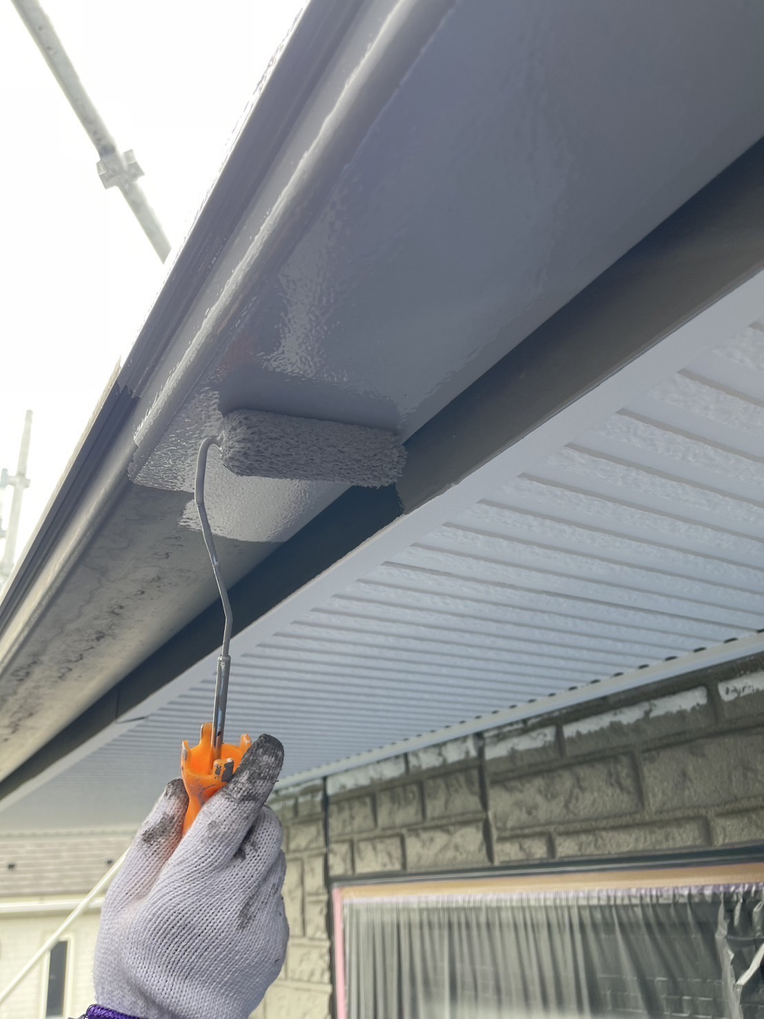 しっかりと下塗りを塗布した上に、中塗り塗料でお客様ご希望の色を重ねていきます。