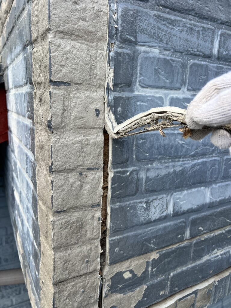 凍害による破損部分はパテ処理を行います。外壁材が平らなご自宅の補修は特に丁寧さが求められる作業です。