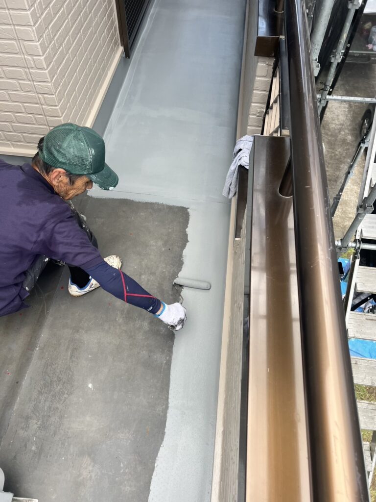 ベランダの防水塗膜は約10年ほどで経年劣化によりひび割れが生じます。ベランダの劣化状況に合った防水材を使用し作業を行います。