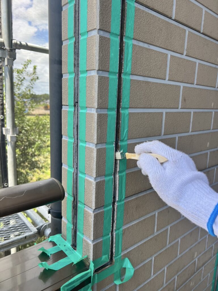 外壁と中・上塗り塗料の密着性を高めるためにとても重要な工程です。