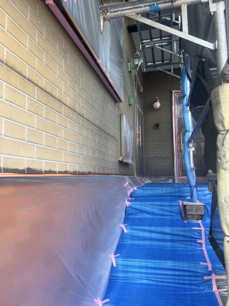 サッシやご自宅周りを汚さないよう、しっかりと養生していきます。
