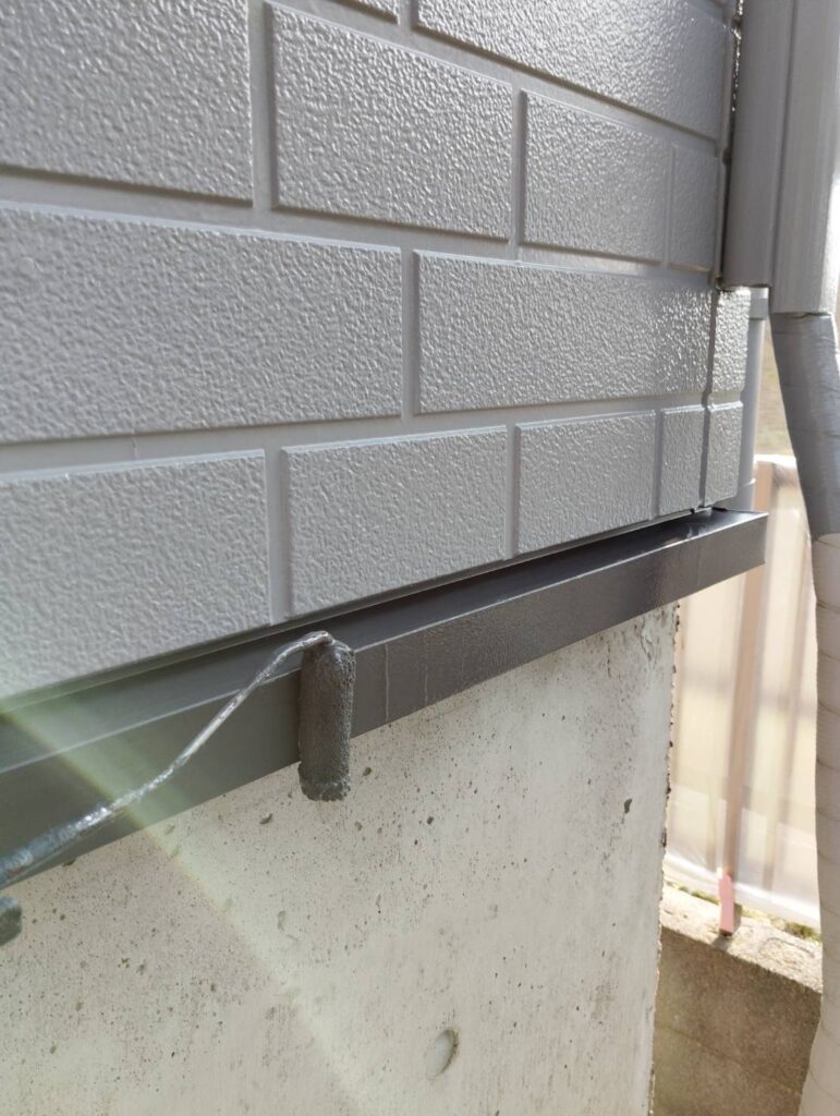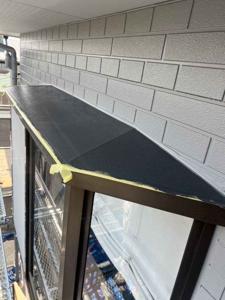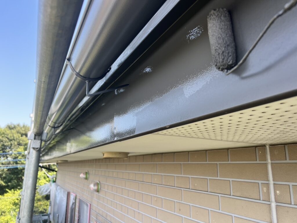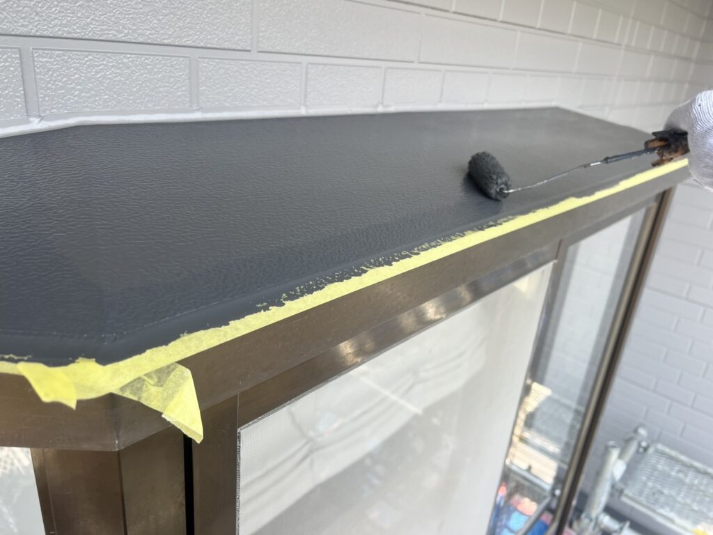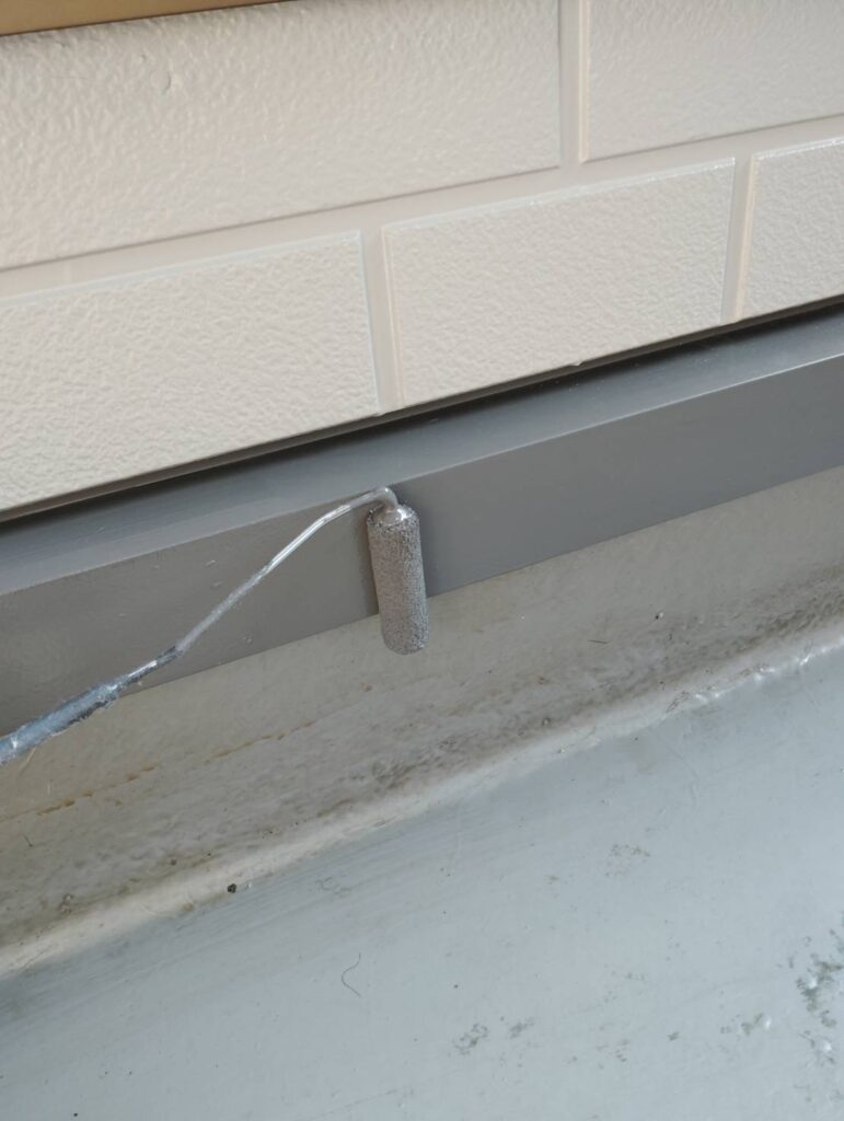 あまり目につかない部分ですが、「お洒落は足元から」というように細かな部分もしっかり塗装していきます。基本的に工事終盤に行う作業なので外壁に塗料が付かないよう集中して塗装をします。