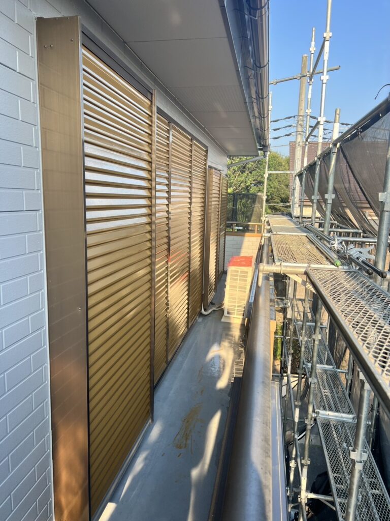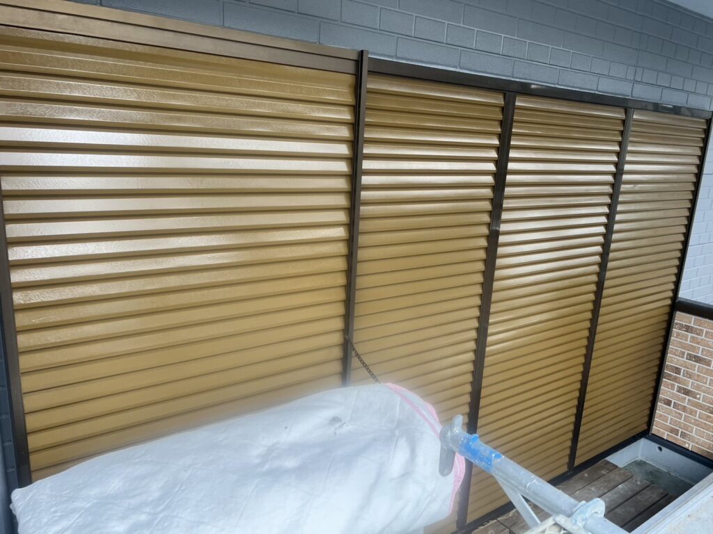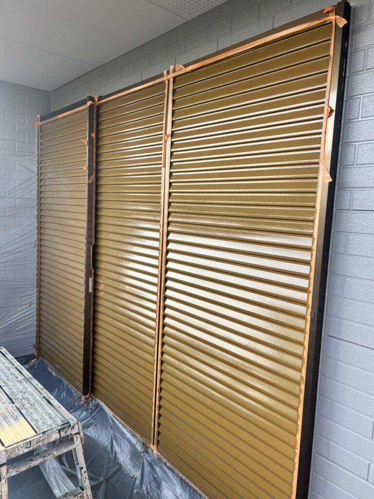 雨戸塗装は刷毛目がでないように基本的には吹付塗装で施工します。塩害等で錆がある時はケレンをし、錆止めを入れ、その上から塗装をします。周りに塗料が飛散しないよう、養生をしっかりします。