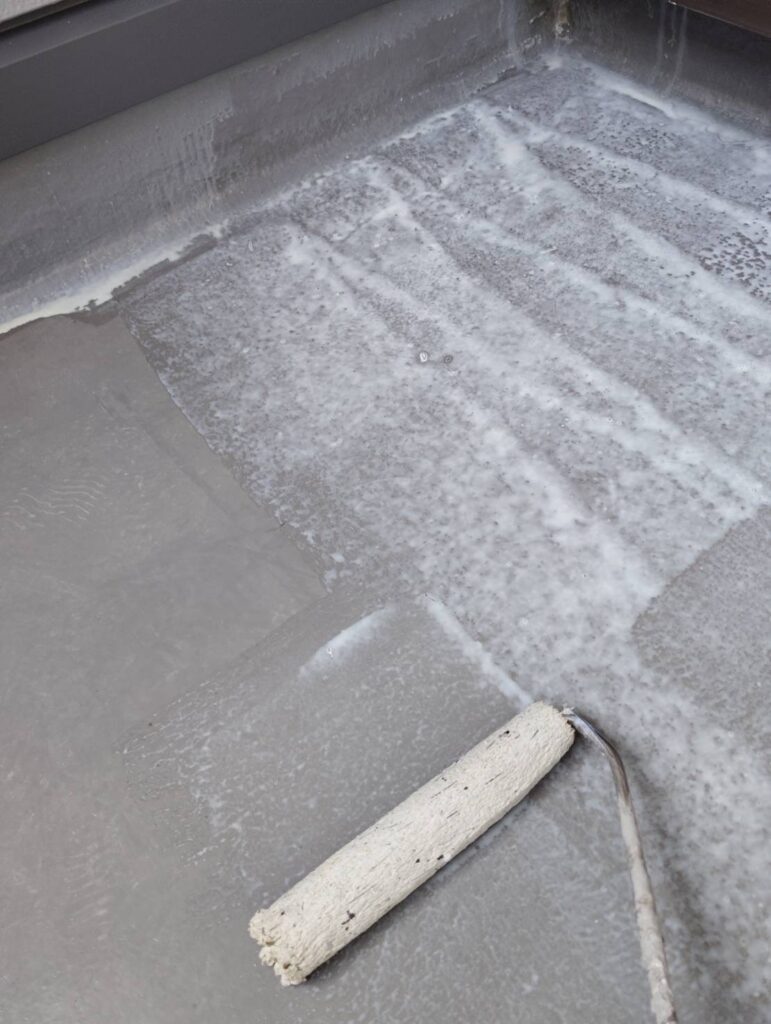 ベランダの防水塗膜は約10年ほどで経年劣化によりひび割れが生じます。ベランダの劣化状況に合った防水材を使用し作業を行います。