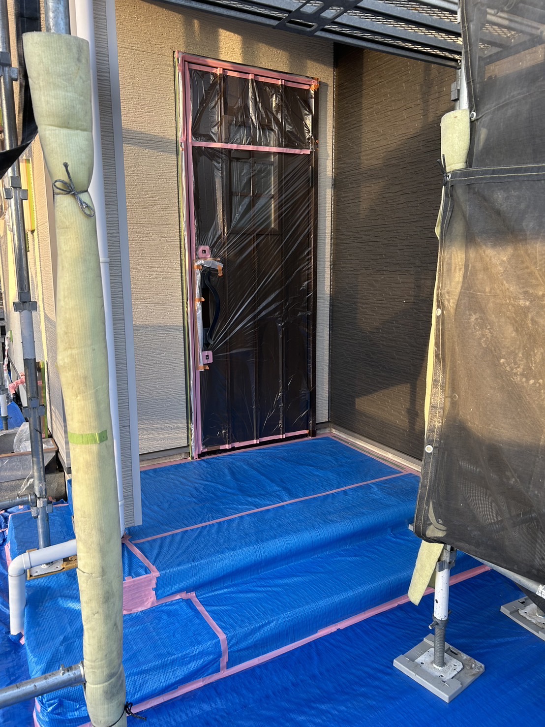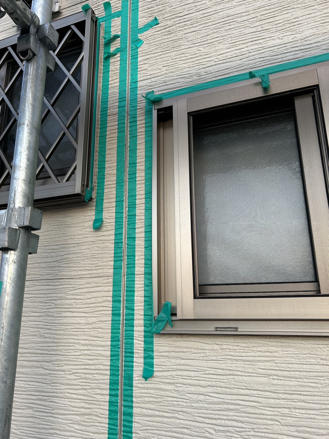 サッシやご自宅周りを汚さないよう、しっかりと養生していきます。