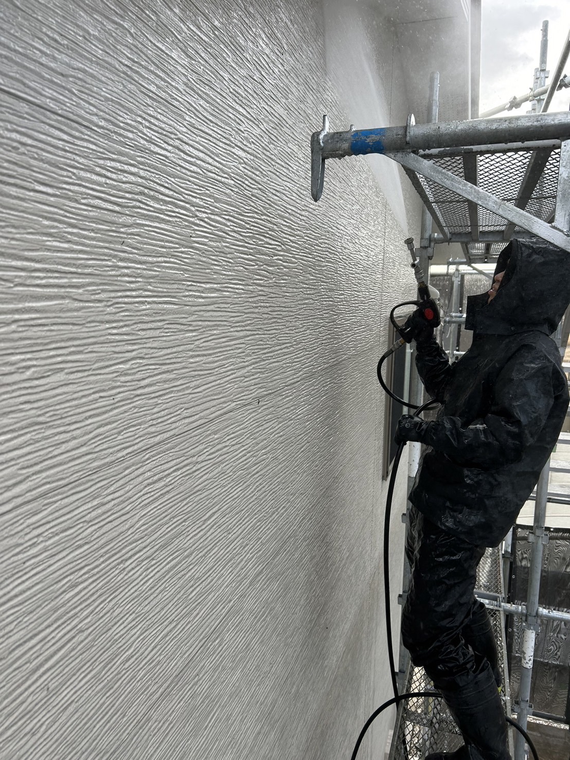 外壁と中・上塗り塗料の密着性を高めるためにとても重要な工程です。