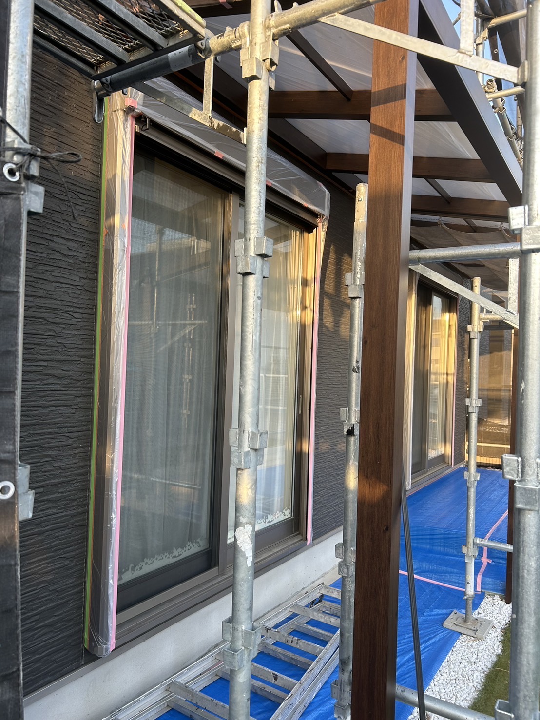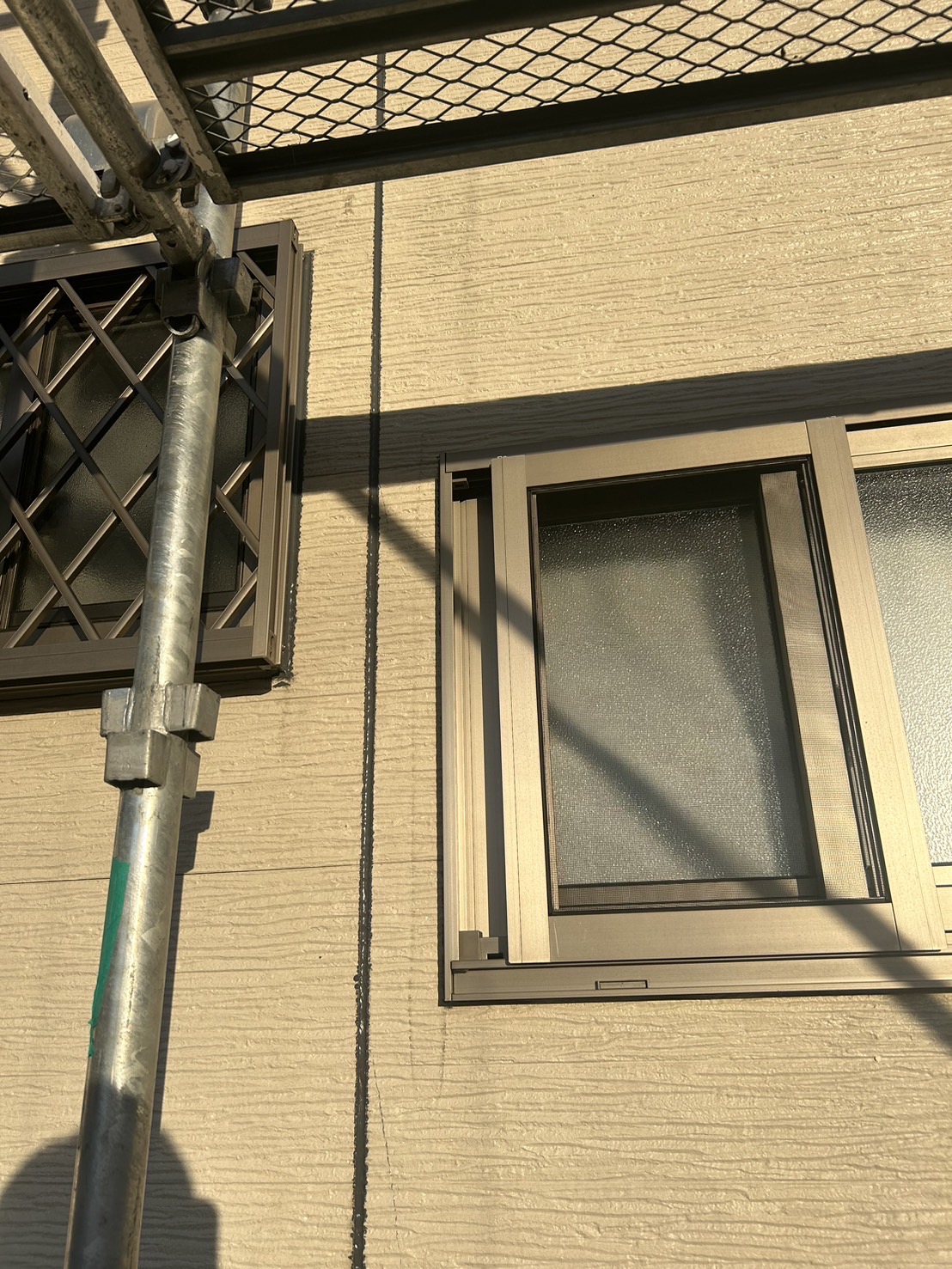 クリヤー塗装は基本的に2工程です。外壁へ他の塗料が付かないようにしなければならない為、塗りつぶしの塗装に比べて緊張感が高まります。