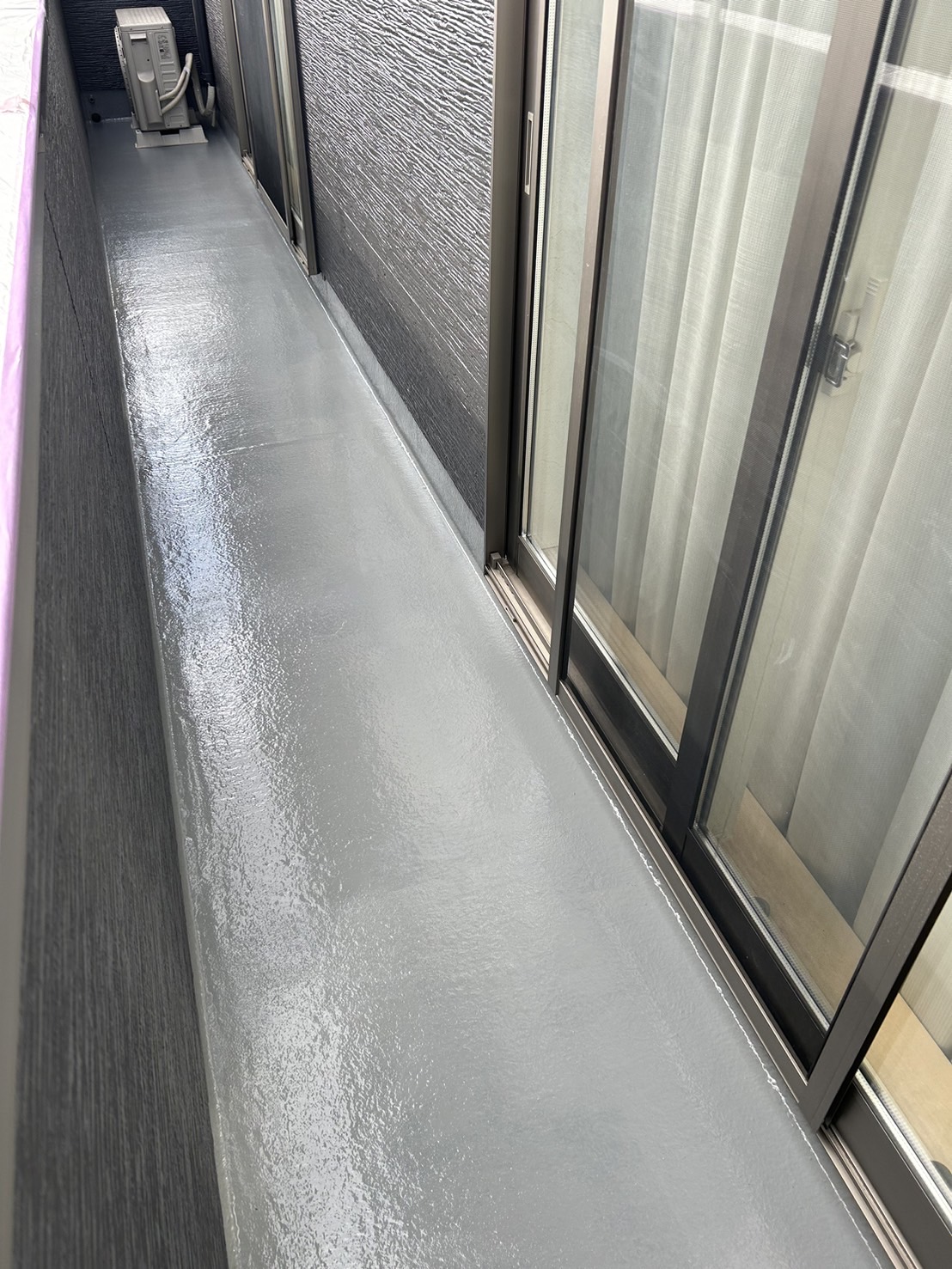 ベランダの防水塗膜は約10年ほどで経年劣化によりひび割れが生じます。ベランダの劣化状況に合った防水材を使用し作業を行います。