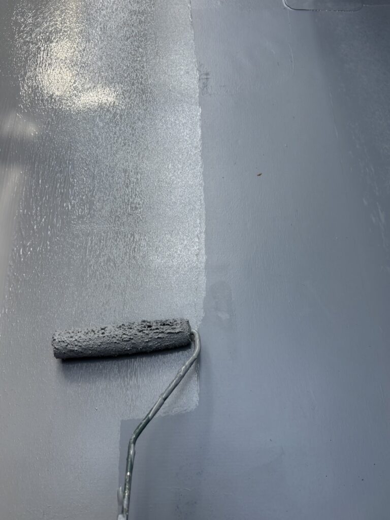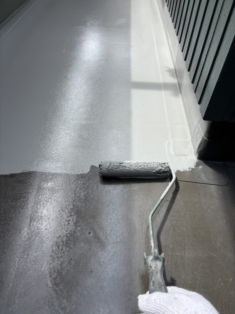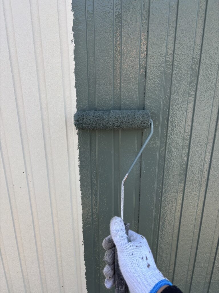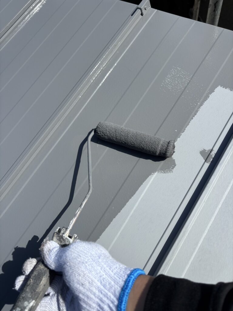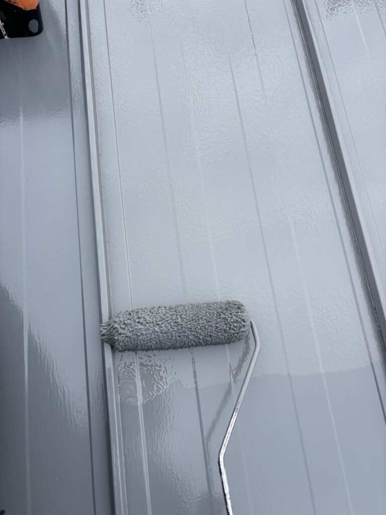 ガルバリウムは平面の為、ムラが目立ちやすいのでゆっくりと丁寧に塗装をしていきます。