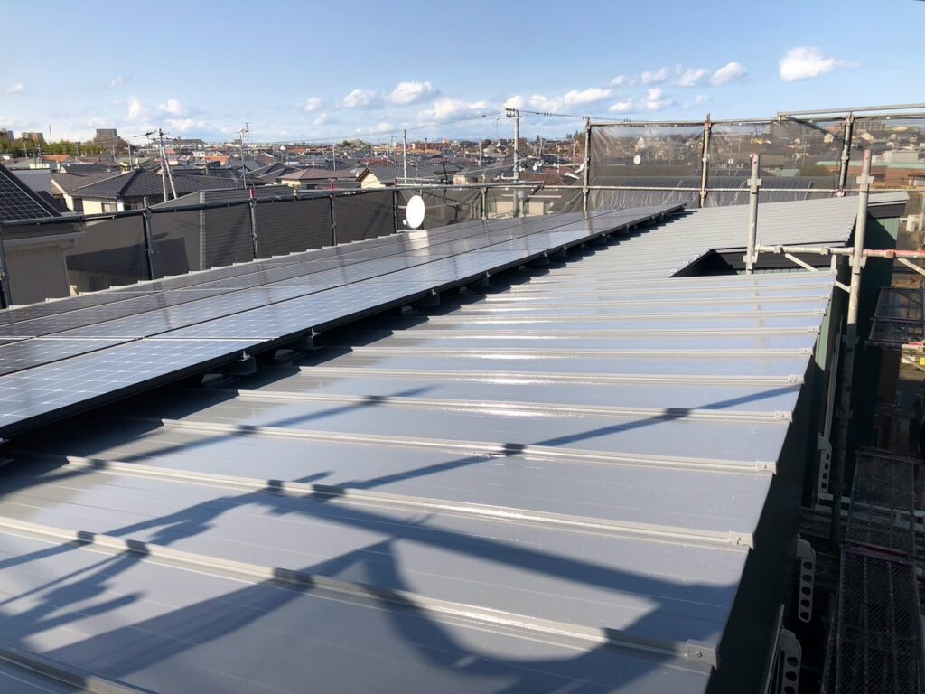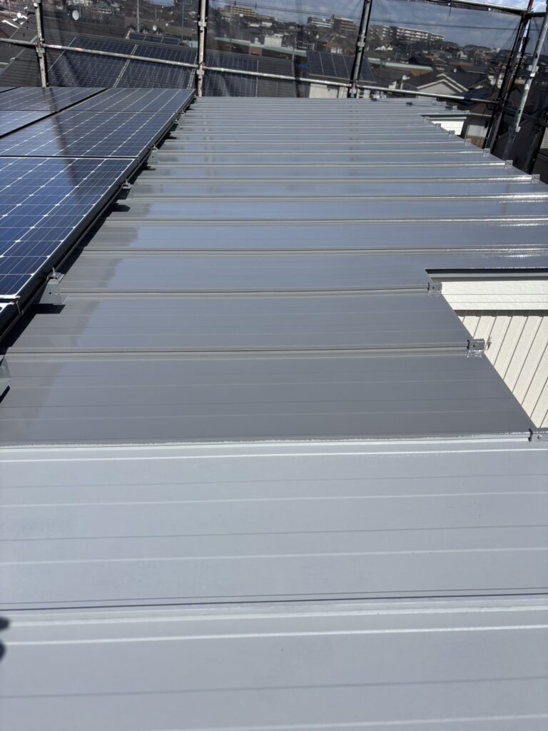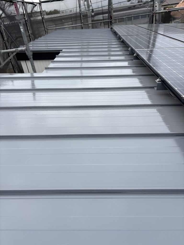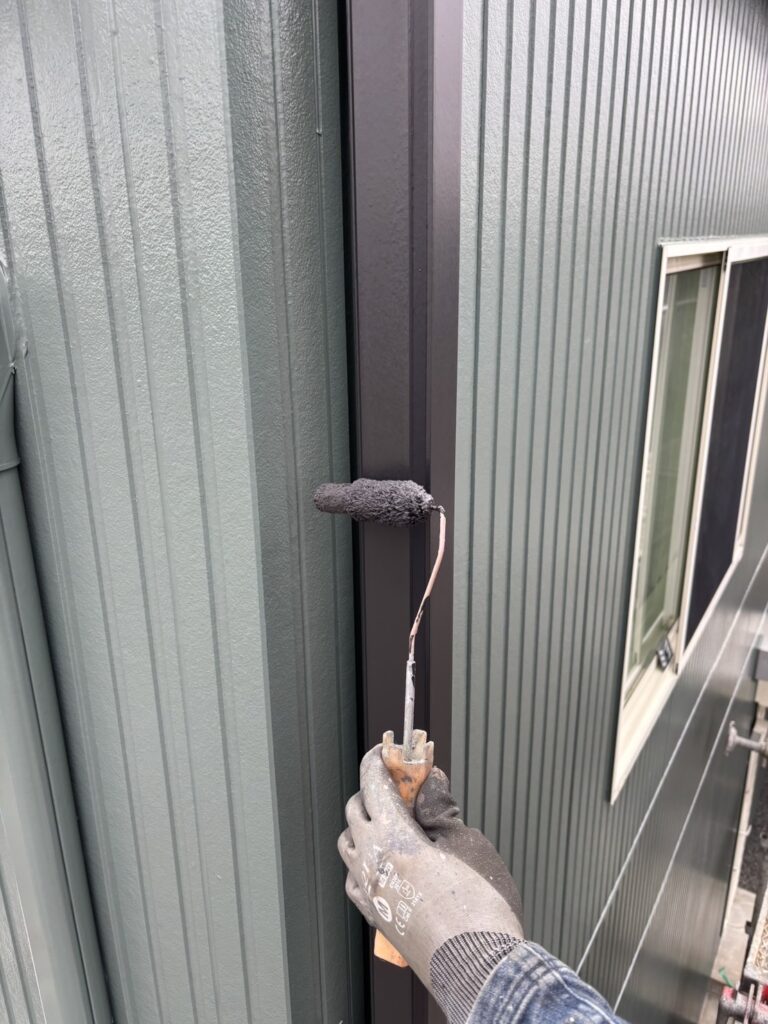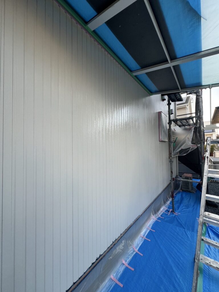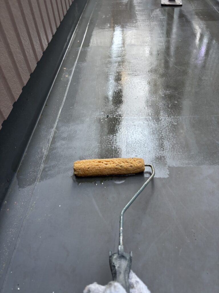 ガルバリウムは平面の為、ムラが目立ちやすいのでゆっくりと丁寧に塗装をしていきます。