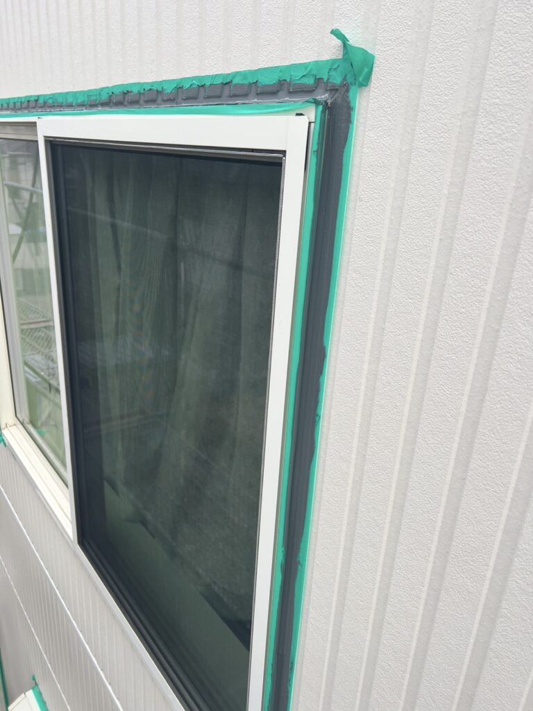 縦目地に関しては打ち替え、サッシ廻りや入隅は既存シーリングの上に打ち増しをします。