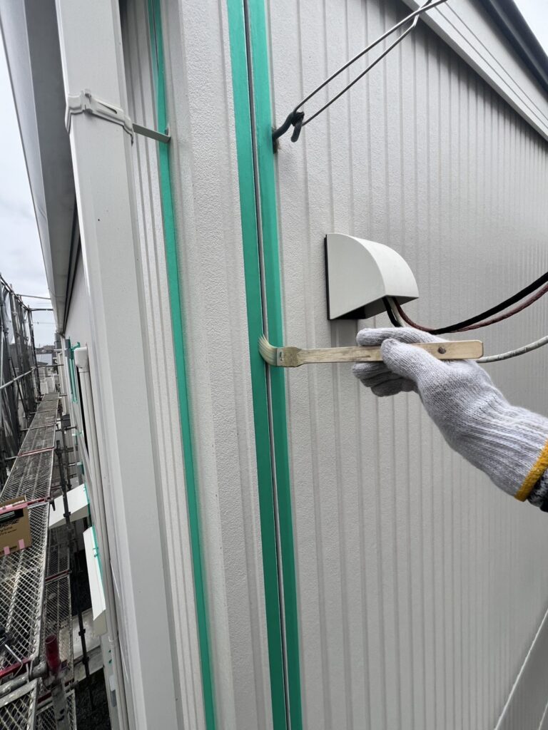 外壁と中・上塗り塗料の密着性を高めるためにとても重要な工程です。