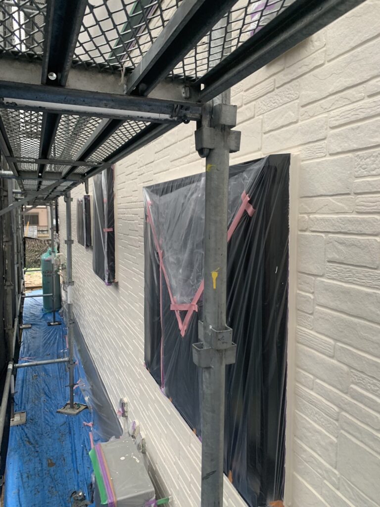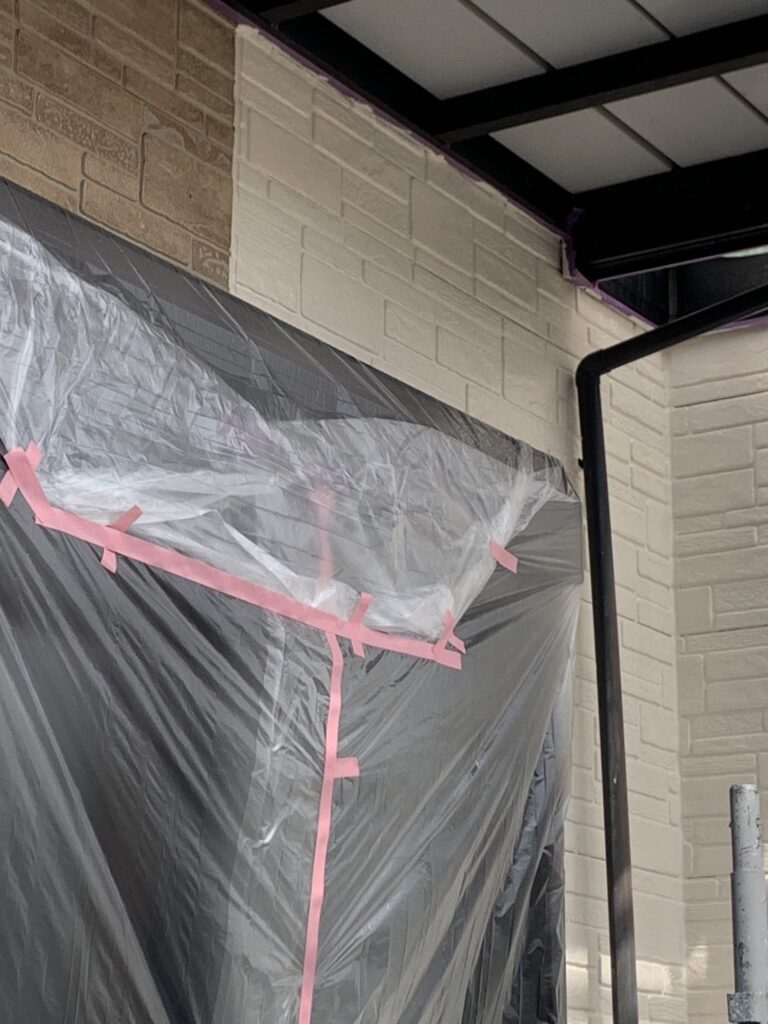 サッシやご自宅周りを汚さないよう、しっかりと養生していきます。