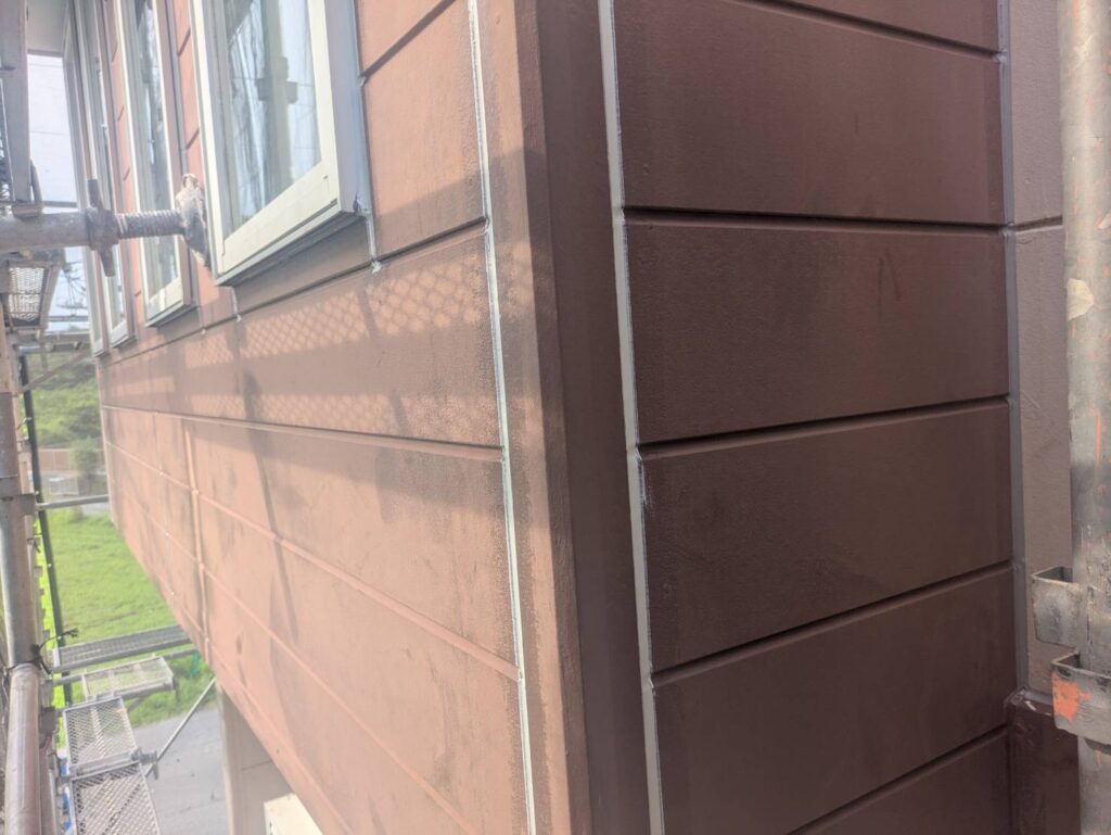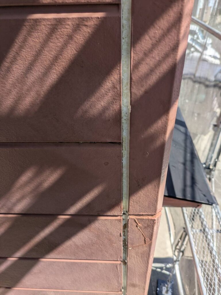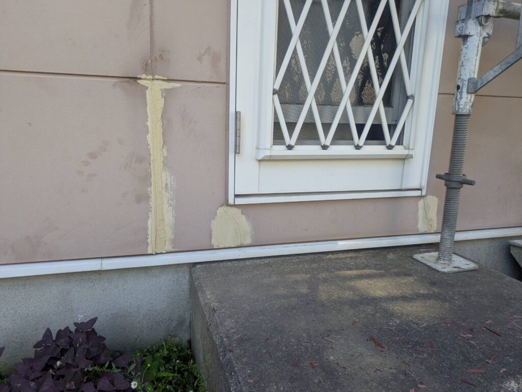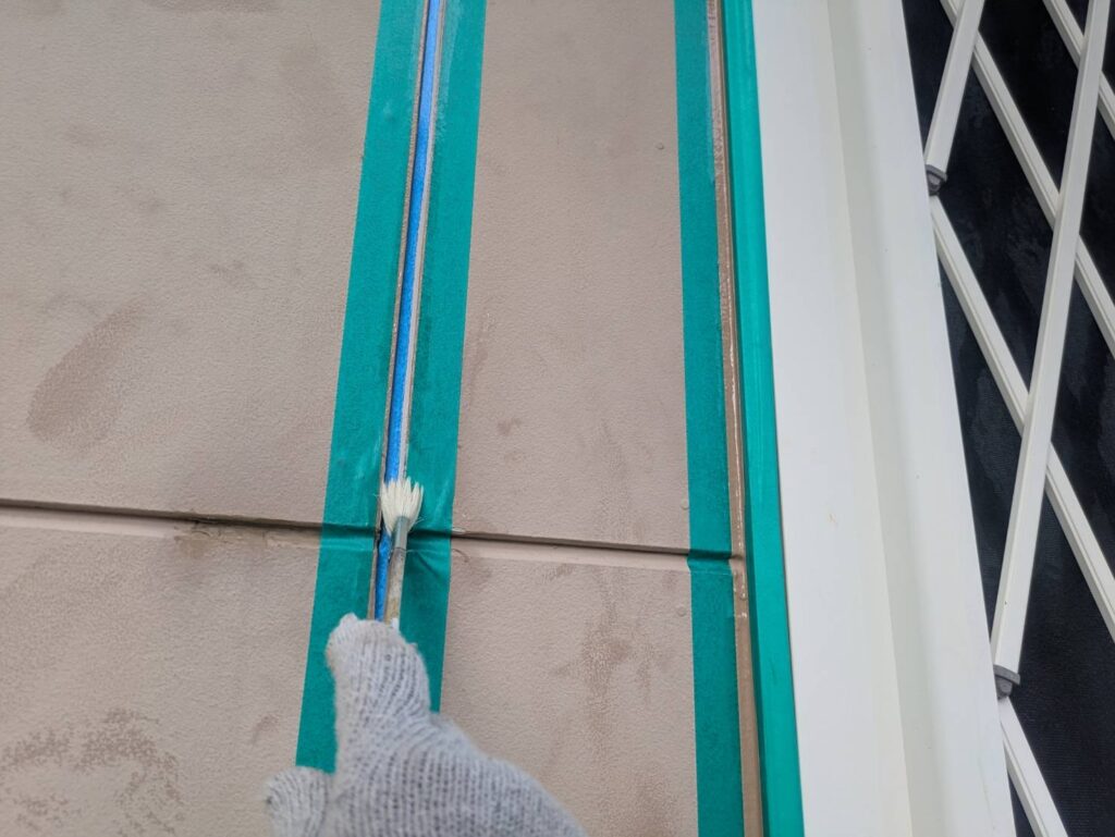 縦目地に関しては打ち替え、サッシ廻りや入隅は既存シーリングの上に打ち増しをします。