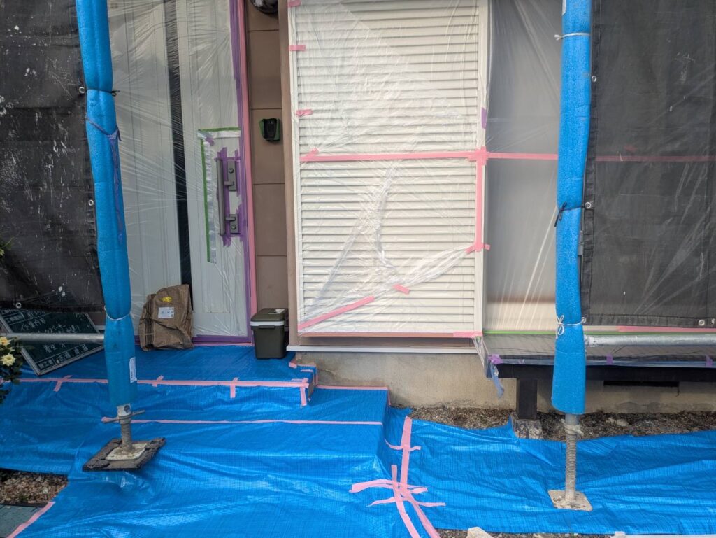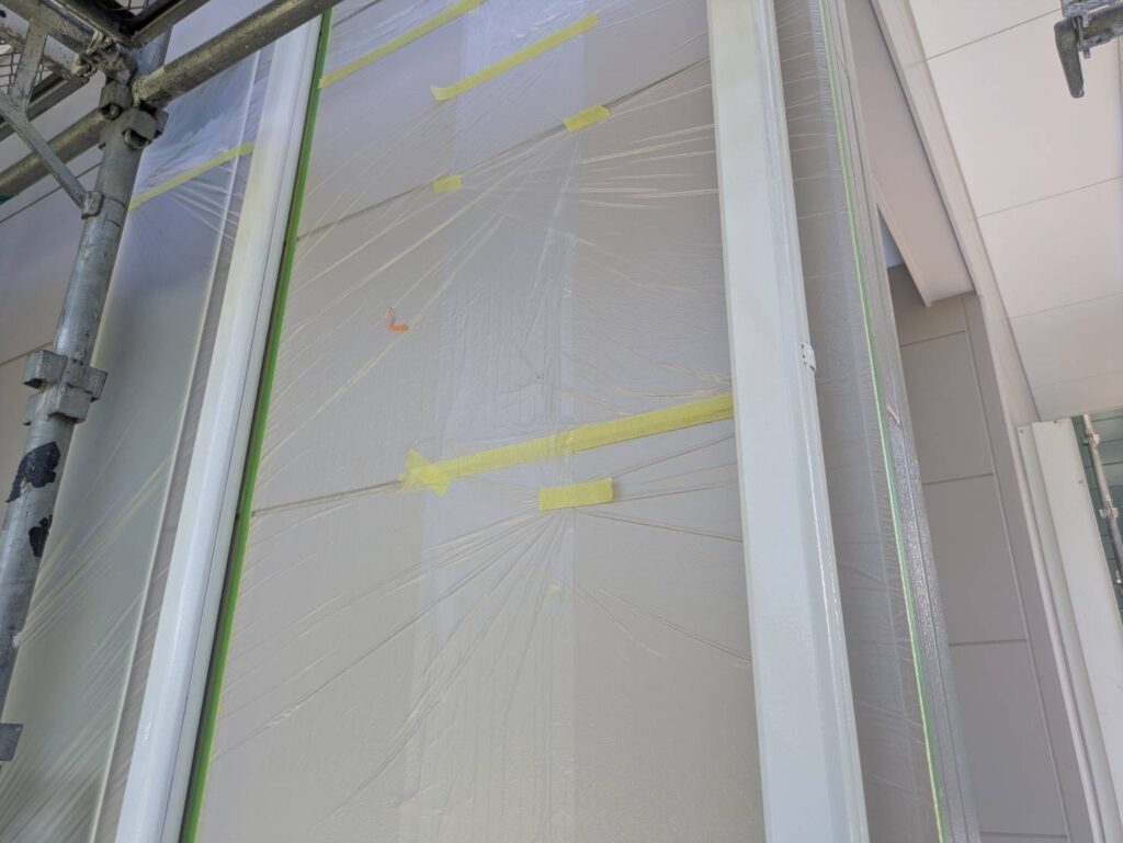 サッシやご自宅周りを汚さないよう、しっかりと養生していきます。