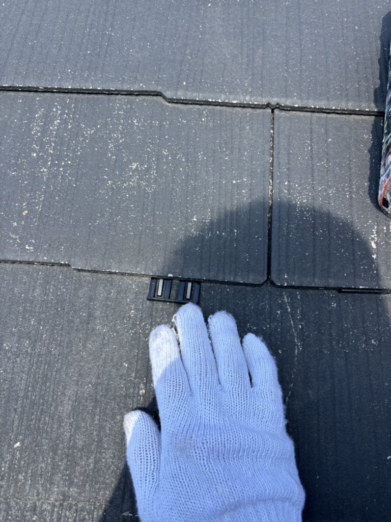 スレートの塗装を初めて行う際は、タスペーサーの取り付けを行います。隙間を開けることで屋根の通気、排水ができ、屋根の内部に水が溜まって雨漏りが発生することを防ぐことができます。