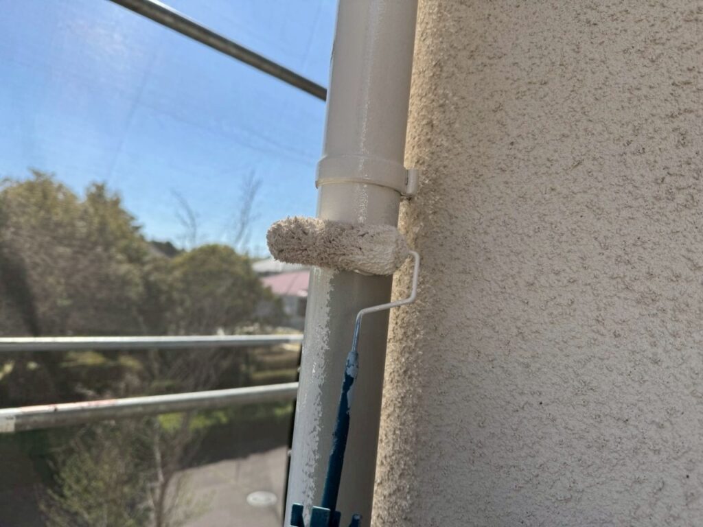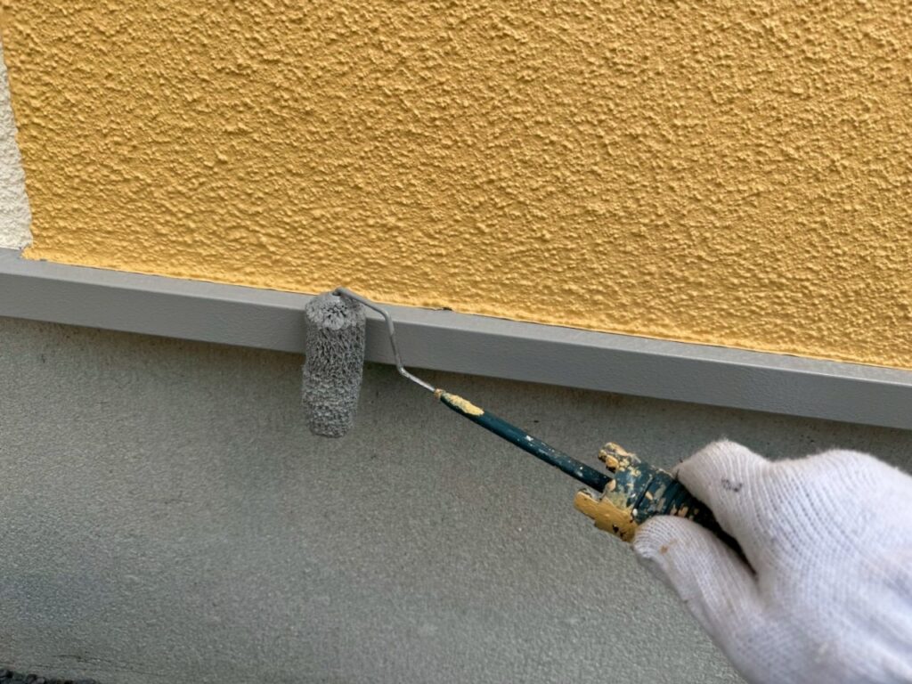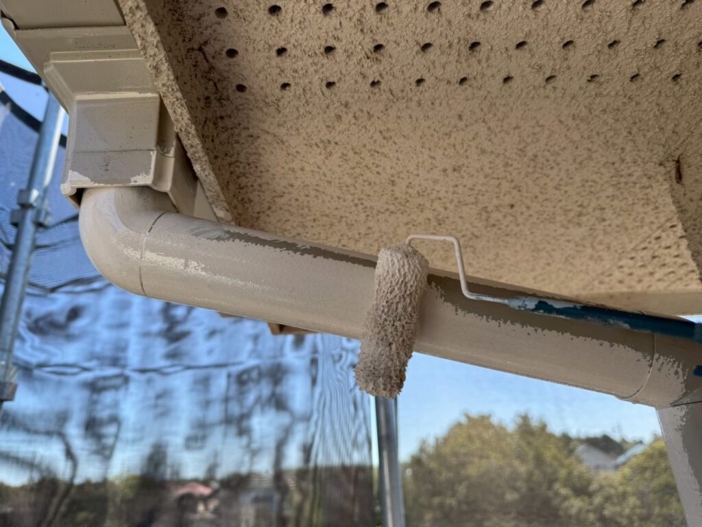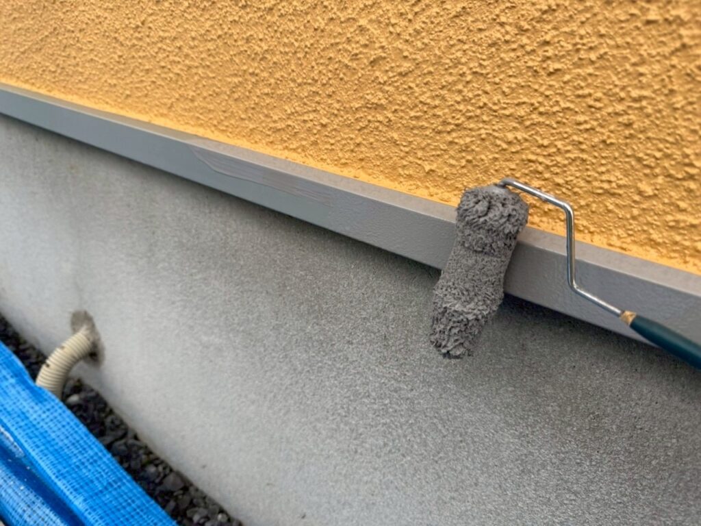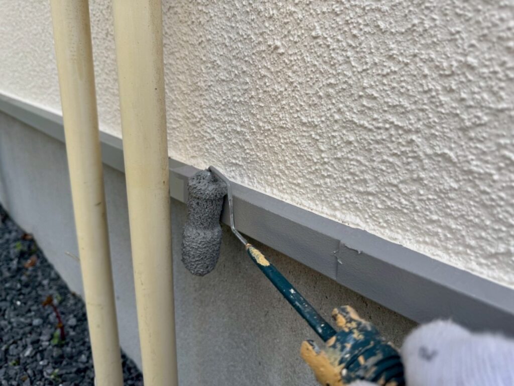 あまり目につかない部分ですが、「お洒落は足元から」というように細かな部分もしっかり塗装していきます。基本的に工事終盤に行う作業なので外壁に塗料が付かないよう集中して塗装をします。
