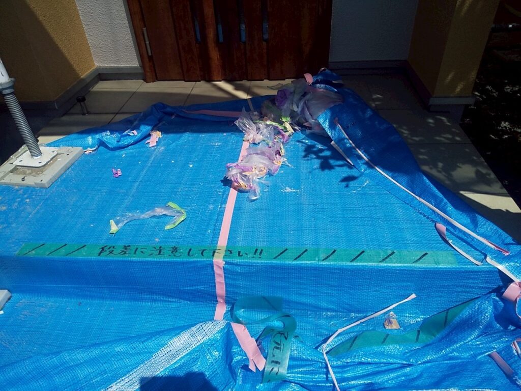 サッシやご自宅周りを汚さないよう、しっかりと養生していきます。